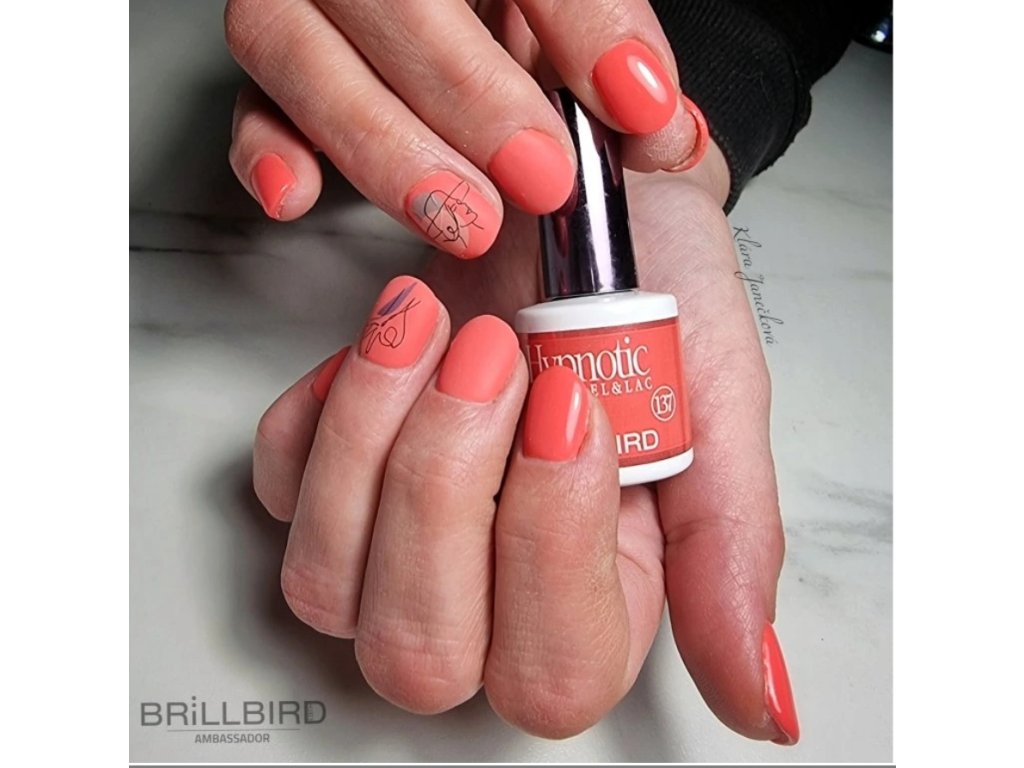 – Naneste 1–2 velmi tenké vrstvy gel laku Hypnotic, každou vytvrďte 60–90 sekund v UV/LED lampě.