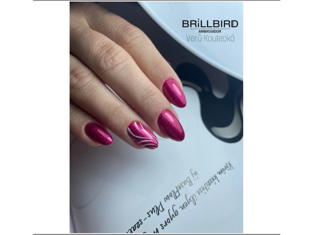 – Naneste 1–2 velmi tenké vrstvy gel laku Hypnotic, každou vytvrďte 60–90 sekund v UV/LED lampě.