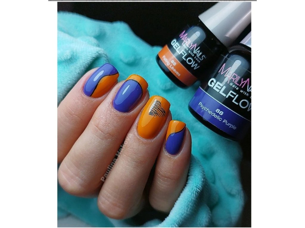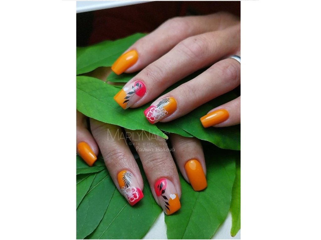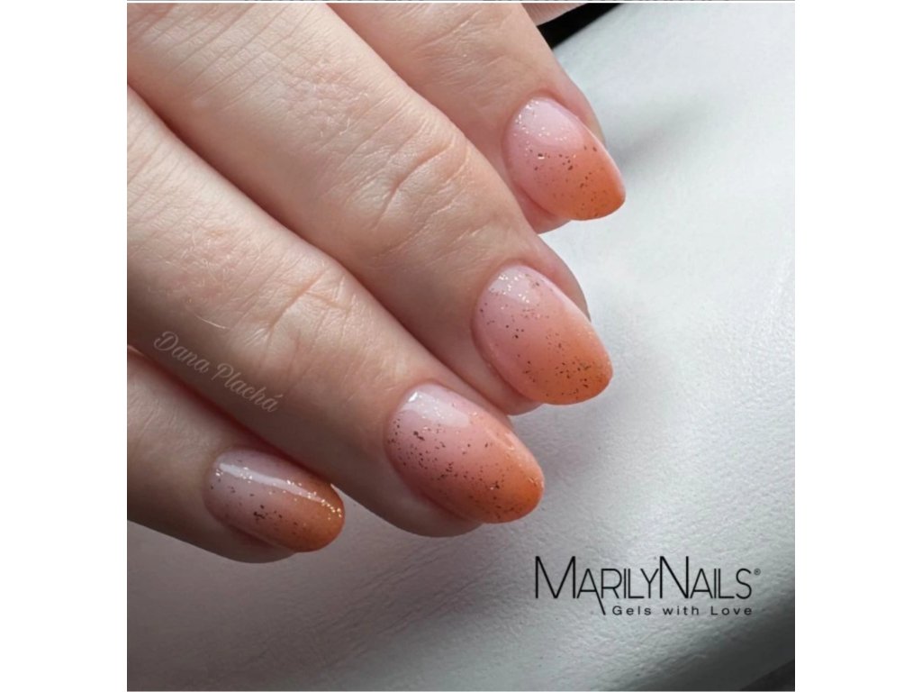 TIP: k perfektnímu nanesení okolo kutikuly si pomozte tenkým štětcem M0 od MarilyNails. Po vytvrzení aplikujte ve střední vrstvě lesk TopFlow Free (příp. Matt TopFlow Free).