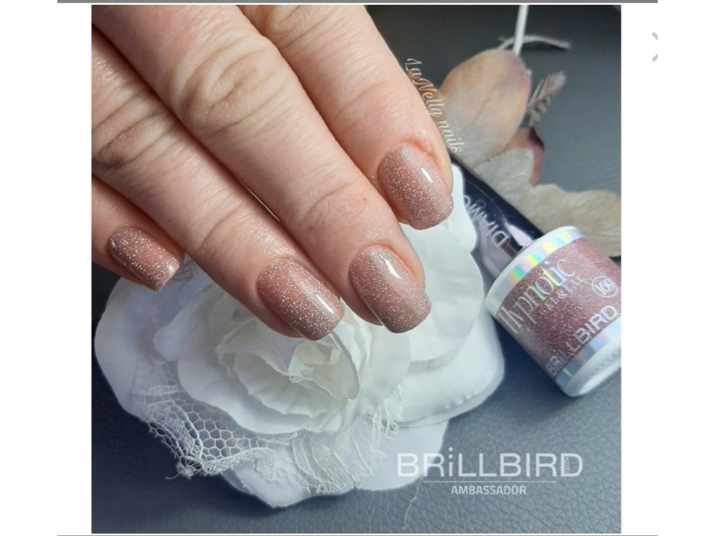 – Naneste 1–2 velmi tenké vrstvy gel laku Hypnotic, každou vytvrďte 60–90 sekund v UV/LED lampě.