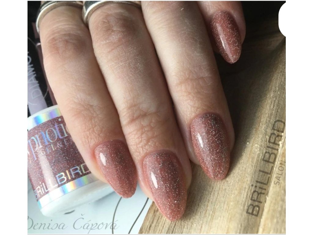 Zažijte oslňující jasný třpyt s reflexním efektem při nasvícení a užijte si dokonalé krytí v každé vrstvě. Diamond gel laky Hypnotic dodají vašim nehtům luxusní vzhled, který si zamilujete vy i vaše klientky. Vyzkoušejte i další úchvatné odstíny z této kolekce.