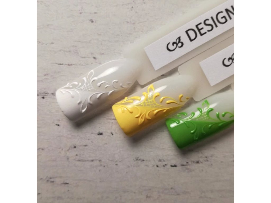 Yellow je sytý žlutý odstín navržený speciálně pro Nail Art techniky. Díky extrémní pigmentaci poskytuje výraznou barvu už v minimálním množství produktu, což umožňuje přesnou a čistou práci při zdobení.